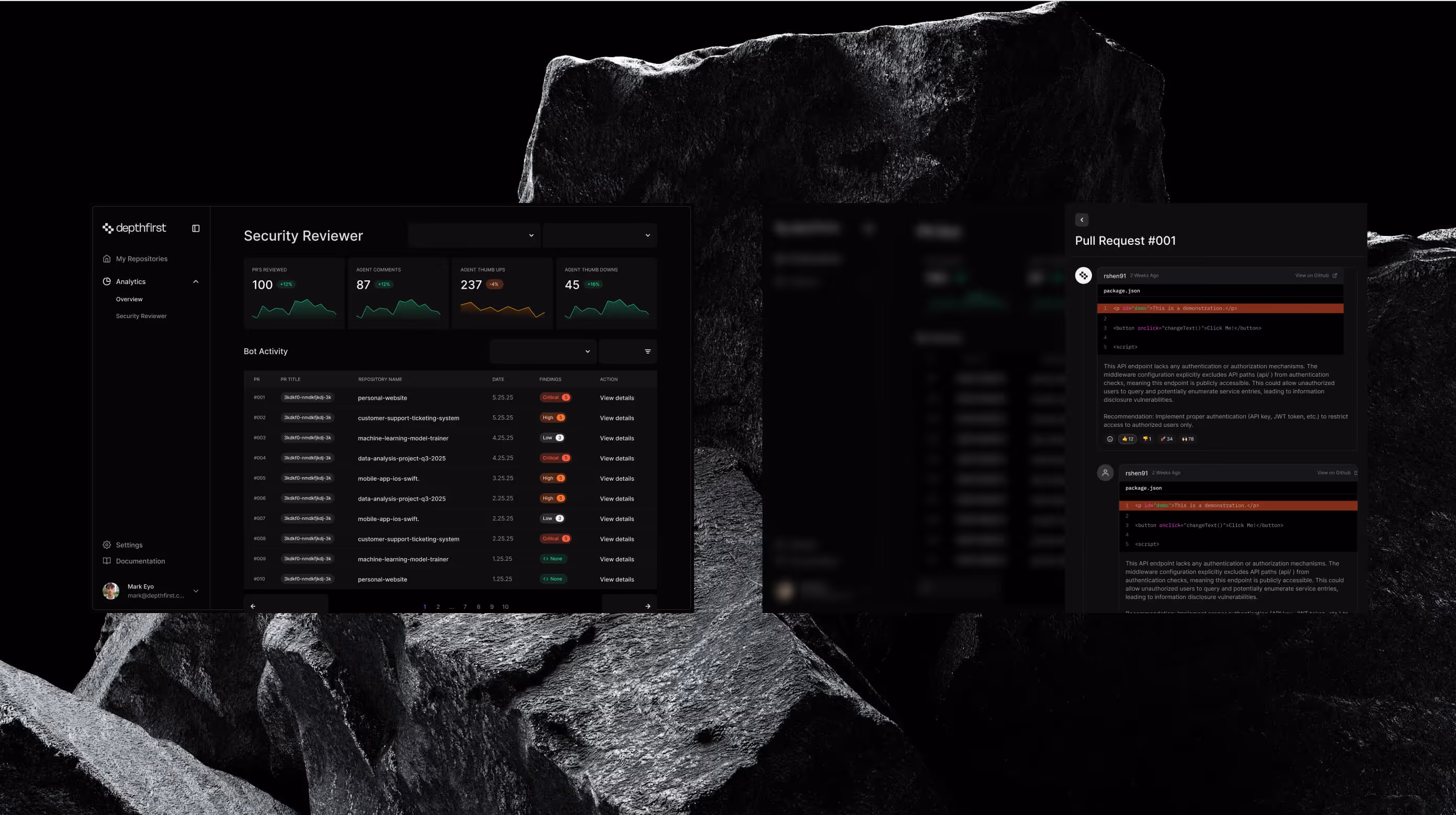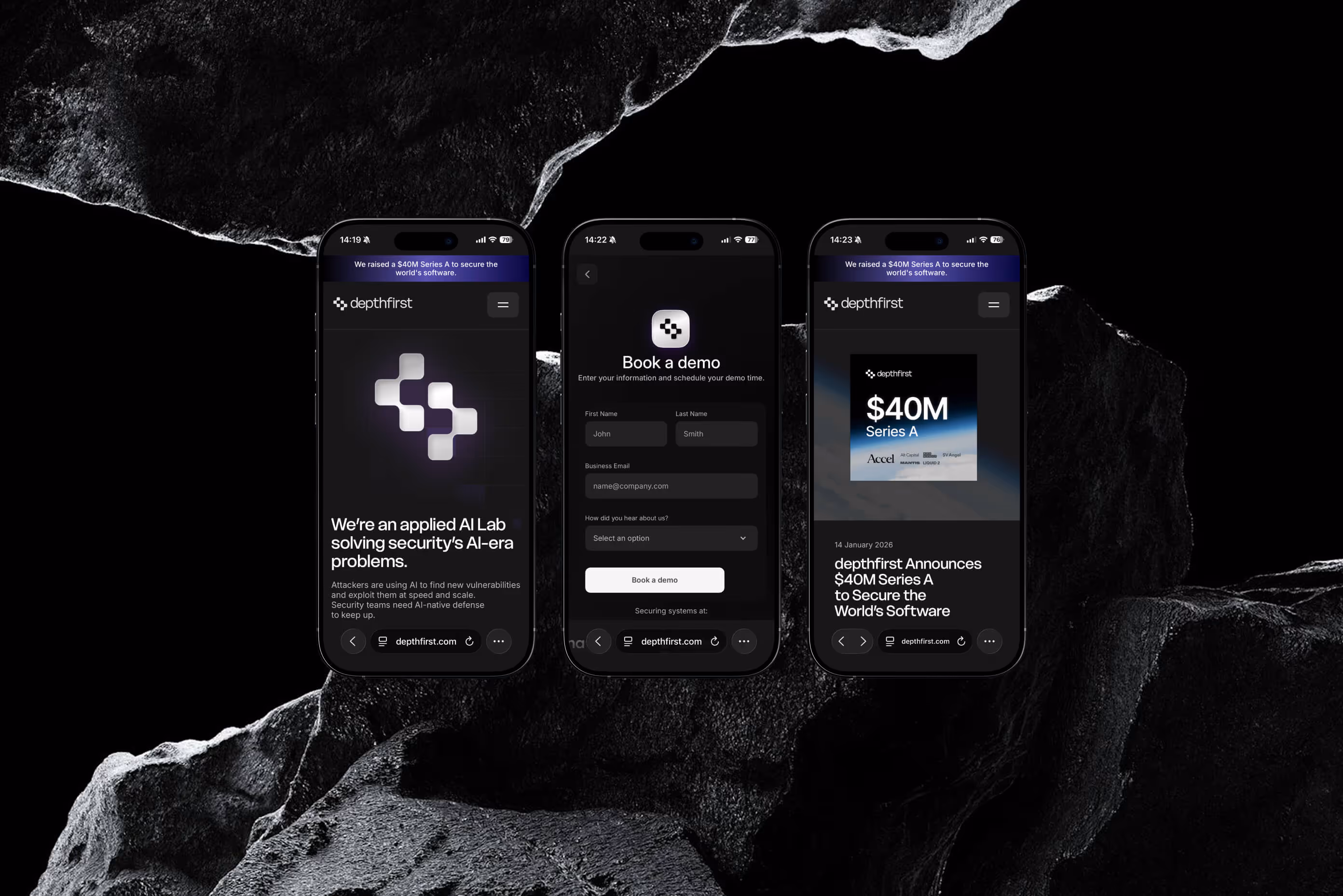DepthFirst is a new AI security platform founded by a team with members from DeepMind, Google, Databricks, and Faire. I began by working on their branding and building both their marketing site and web application. The public launch of the platform contributed to a $40M Series A funding round.