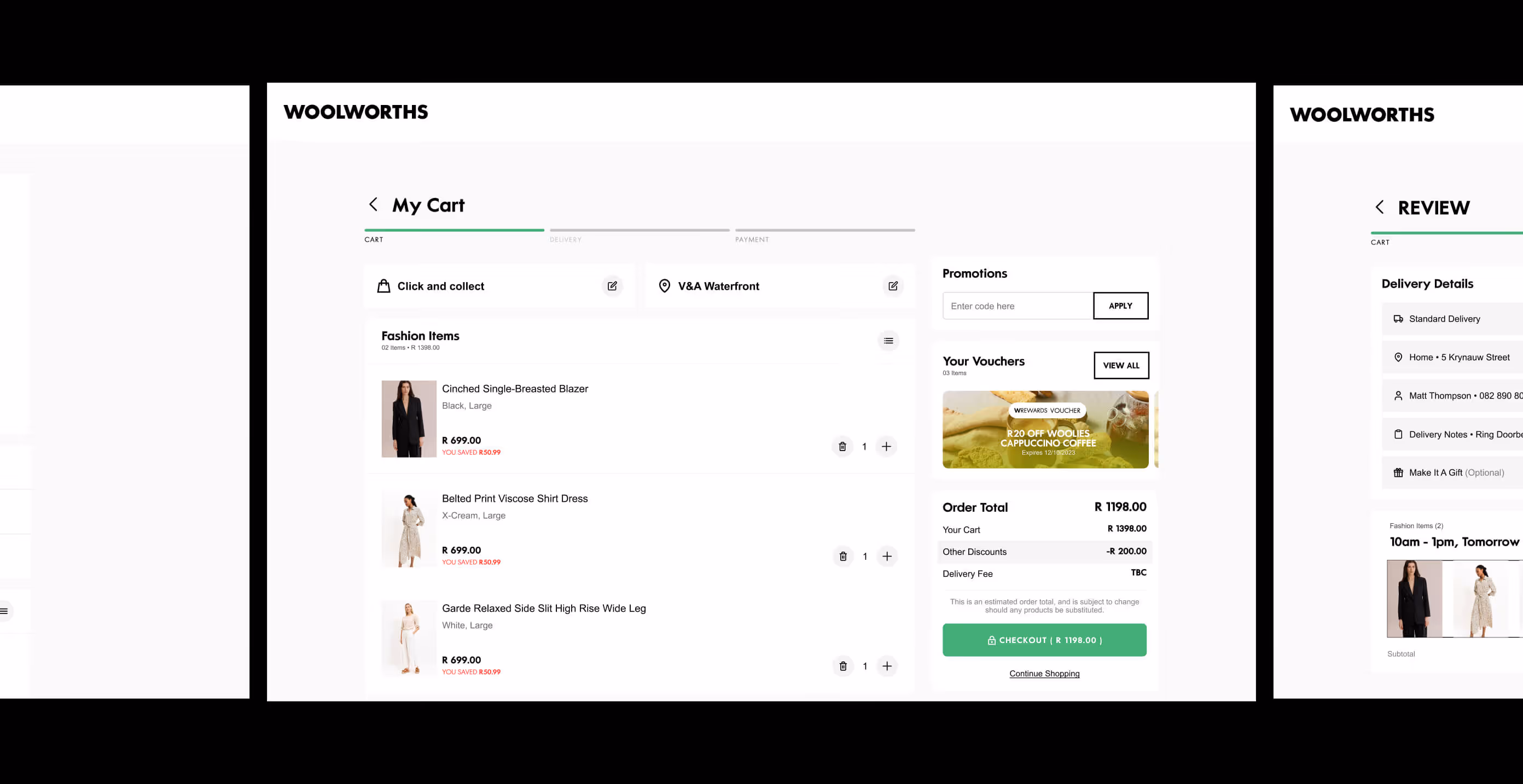 As a product designer for one of South Africa’s largest retailers, I worked on smoothing and refining the consumer e-commerce experience, with a specific focus on analysing and improving the checkout process. This involved competitor analysis, user research, multiple iterations, and the final design of the flow in line with industry best practices. These efforts also resulted in a comprehensive design system that improved brand consistency, as well as a more efficient and streamlined design process.